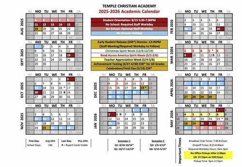 T C A 2 0 2 5-2026 C A L E N D A R